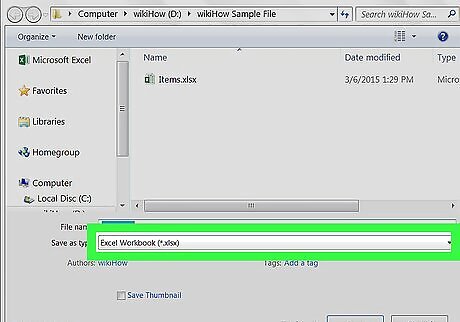 Click the selector bar next to File Format. It's located at the bottom of the Save As window. Clicking will open a list of all the available file formats on a drop-down menu.