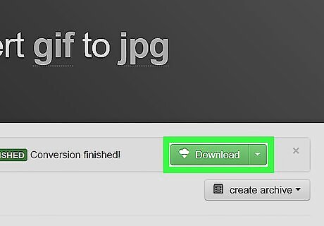 Click the green Download button. This button shows up in the upper-right corner of the page when your file is ready for download. It will download a JPG version of the uploaded GIF to your computer. If you're converting an animated GIF, you will download a Zip archive of all the JPG files making up every single consecutive image in the GIF. Depending on your browser settings, you may be prompted to select a download location.