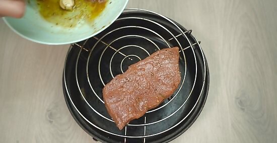 Mix up a simple marinade in a glass baking dish. Baking without marinating might leave the steak a little tough, so take the extra time to marinate it. A good marinade consists of oil, an acid, and some herbs or spices. You can really use whatever flavors you like. Just mix equal parts oil and acid, add some herbs, and you’re all set. Use this simple marinade if you’re looking for an idea: Pour enough pineapple juice in the dish to cover half your steaks, then add the same amount of olive oil. Add 3 sprigs of fresh rosemary and 2 sliced and peeled cloves of garlic. Add a pinch of salt and pepper for some added flavor. You can adjust this basic recipe to your liking. Sub orange juice for pineapple juice, or avocado oil for olive oil. The combinations are endless! You can use a few shakes of dried herbs if you don’t have fresh herbs on hand.