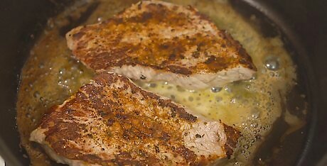 Add a pat of butter to the pan for extra flavor and cook for 2 more minutes. After 4 minutes is up, drop a pat of your favorite butter into the pan. As it melts, spoon the butter over the steak. Let it cook in the butter for 2 minutes.