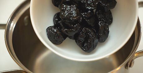Soak your prunes in water for 30 minutes. Fill a large bowl about half full with lukewarm water from your sink. Soak 15 to 20 prunes in the water until they get soft enough to mash. You can also steam them on the stovetop with 1 to 2 tablespoons (15 to 30 mL) of water for about 10 minutes instead.