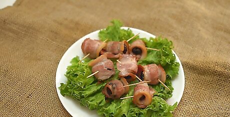 Serve your bacon wraps while they are warm. Transfer your bacon-wrapped prunes to a serving dish or tray and hand them out to your guests. Keep the toothpicks in them so that your guests can pick them up easily without getting their hands dirty. Bacon-wrapped prunes are great for cocktail hours or appetizers.