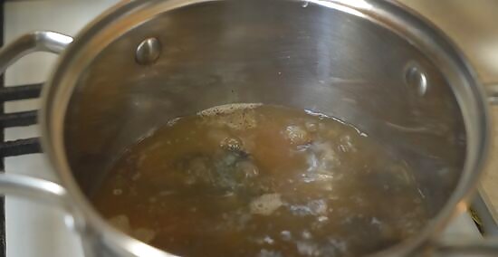Simmer your mixture for 30 minutes. Turn your stovetop down to medium heat so that small bubbles rise to the surface of your mixture. Keep an eye on your pan, and if it starts to bubble over, turn the heat down again. Simmering allows the water to cook out slightly and turn your mixture into more of a thick syrup.