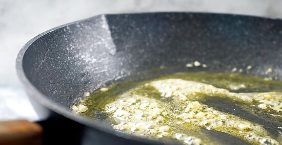 Sauté minced garlic in butter for 30 seconds. Peel 1 clove of garlic and mince it while you melt the last 1 tablespoon (14 g) of butter in the skillet. Turn the heat to medium and add the minced garlic to the melted butter. Stir and sauté the garlic until it's fragrant. This should only take 30 seconds or the garlic may start to burn. 1 clove of minced garlic generally equals 1/2 teaspoon.