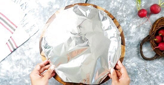 Cover and keep the radishes warm. Transfer the sautéed radishes to a large platter and cover them loosely with a sheet of aluminum foil. This will keep them warm while you make the browned butter.