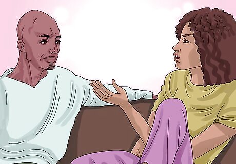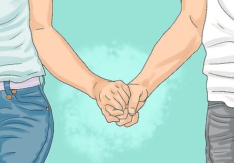 Touch one another. Touching, embracing, and other physical intimacies reinforce the emotional bond that you share with your partner. Even if you are feeling anxious or frustrated, remember that touch is an important part of a relationship, and it’s soothing for both you and your partner. Of course, if one of you doesn’t want to be touched at a given time, talk about your feelings and respect one another’s space. There are different types of touching for different levels of intimacy. With your partner you’re looking for love/intimacy touching, which includes cuddling, kissing, face touching, and nuzzling. Put your arm around your partner or slip their arm around you if that’s more comfortable. Hug your partner and hold it for longer than your normally would. Focus on the closeness that you two share. Hold hands. Kiss one another. Brush the hair out of their face.