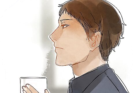 Reconnect with your surroundings during flashbacks. A flashback is when memories of a traumatic experience make it seem as though you are reliving the trauma. Many rape survivors have flashbacks. There are some things you can do to make dealing with flashbacks a bit easier to handle. Use your five senses to help you return to the present. Look around, and visually connect to the present. Listen to the sounds around you and try to locate a familiar scent. This should also help you to disconnect from the memory and return to reality. Touch something that is either hot or cold. Grabbing an ice cube or a hot cup of coffee can help you to exit the flashback. Use your breath. Breathe slowly and deeply. This will help regulate your nervous system and calm your body's panic impulse.
