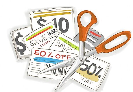 Save on essentials. To help stay within your budget, cut coupons, pack your lunch instead of eating out, and call your phone company to see if they offer a hardship discount. Coupons can be found in weekly mailers or online. Don't be afraid to ask for discounts. Remember, your situation is neither unique nor shameful. Most companies, like credit card companies or phone companies, will be happy to work with you if you ask. You can improve your chances of getting a discount on your payment by pointing to your positive payment history with the company.