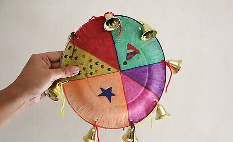 Start with an ordinary paper plate.It's recommended to use the smaller size plate. A styrofoam or plastic plate will work as well. You also may want to double the plate, if you prefer a stronger or heavier tambourine.