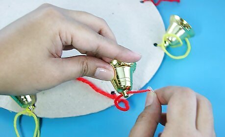 Add the bells. Between each stitch, insert a jingle bell.