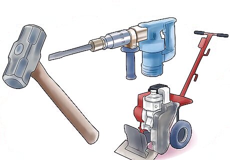 Get the right tools. If the cutting of many paving slabs and walling blocks is necessary, you may find it worthwhile to hire a slab and walling block splitter from a local hire shop, or use a 9 inch/23cm angle grinder. If little cutting is needed, you will be able to make do with a club hammer and bolster chisel. If hardcore needs to be put below paving on soft ground, this must be well compacted. Hire a plate compactor for this. You will also need a good spirit level, ideally 600mm/23.6 inches long.