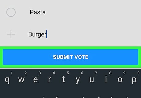 Tap Submit Vote. The poll will now appear in your group chat. As other members of the chat cast their votes, the results will update for all to see.