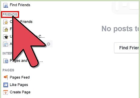 Go to Friends. On the left panel of the News Feed page, click on the Friends section header. Your current list of friends lists will be displayed.
