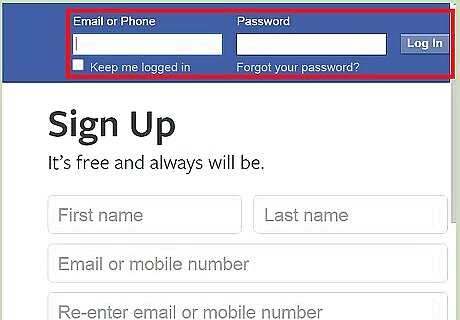 Log in. Use your Facebook account and password to log in. The login fields are found on the upper right corner of the page. Click the “Log in” button to proceed.