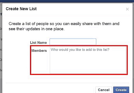 Add members. The second box here is where you put the names of your friends who you want to be part of this friends list. Type them in.