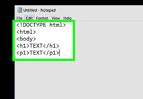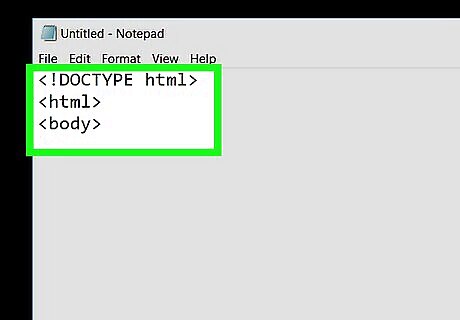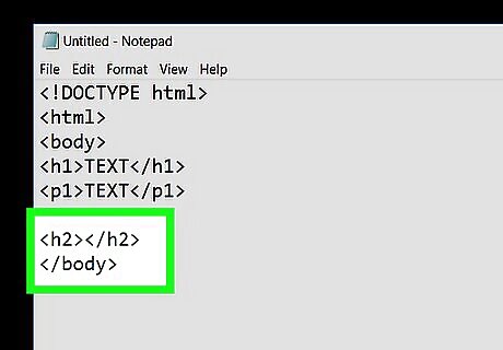 Close the BODY and HTML tags. Once you've entered your last line of code, type in on its own line and press ↵ Enter, then type in . Your document is now ready to be styled with CSS.