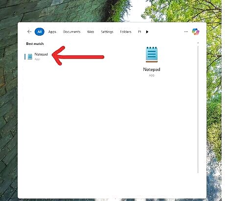 Open Notepad. Open Start Windows Start, type in notepad, and click the blue Notepad app at the top of the Start window.