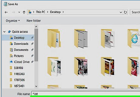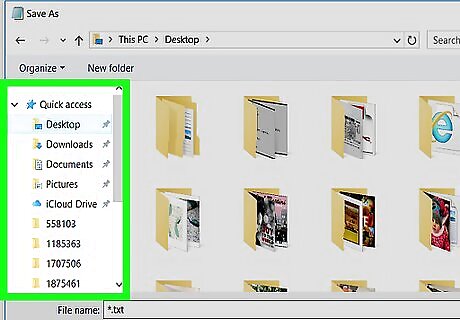 Select a save location. Click a folder (e.g., Desktop) on the left side of the window.