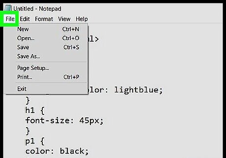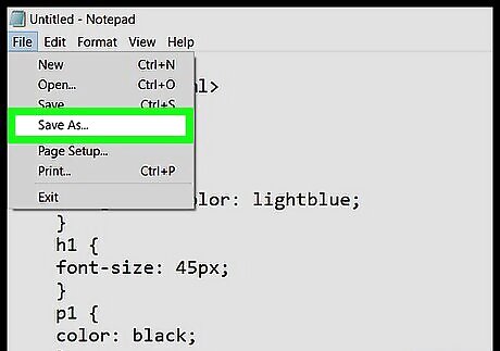 section using the tag of your HTML file. Additionally, make sure to save your CSS file with the .css extension.Click Save. It's on the bottom-right side of the "Save As" window. This will save your HTML file with the CSS snippet included in an executable format, allowing you to open it in your preferred browser (e.g., Microsoft Edge, Google Chrome, Safari) or an HTML editor, instead of Notepad.