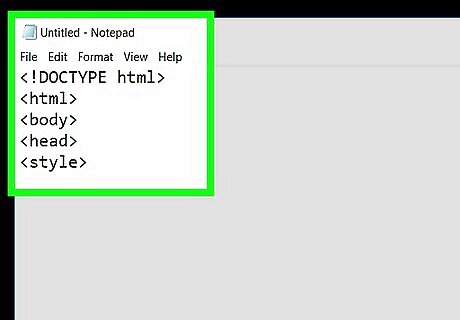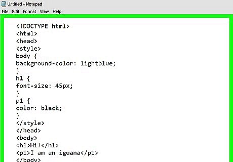 Add a STYLE tag. Type in and press ↵ Enter, then type in and press ↵ Enter. Your CSS sheet is complete, meaning that you can now review and save it.