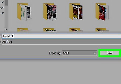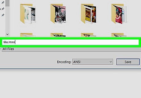 Name your file with a ".html" extension. In the "File name" text field, type in your preferred document name (e.g., "index") followed by .html. For example, if you name your file "index", you'd type index.html into the field. If you create an external CSS file to style your web page, you will need to link it within the