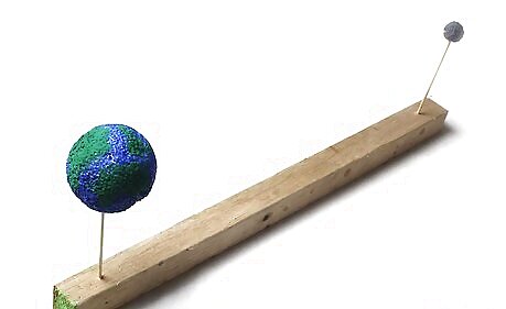 Measure the distance you want between the balls. You can place the balls any distance apart. However, if you want to make the model to scale, you will need to measure the distance more precisely. The objects should be separated by a distance of 9.5 times the earth’s circumference. Measure this distance with a ruler or tape measurer. For example, if your earth is 4 inches (10 cm) in diameter, the moon should rest 38 inches (97 cm) from the earth.