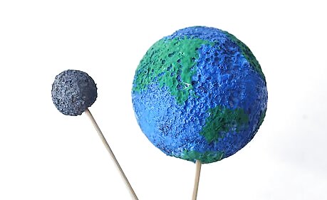 Make the smaller ball look like the moon. The smaller ball can be colored grey. You can add black dots and circles to denote the craters that are scattered across the moon’s surface. Some people also choose to color the moon yellow; just make it clear that it is not the sun. The relative size of the objects should be a reasonable indication that your model contains the moon and not the sun. The sun is much larger than the earth or moon.