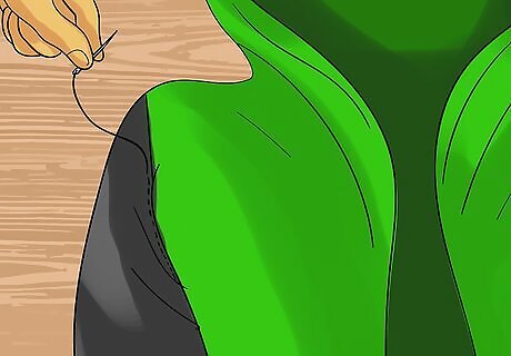 Using your sewing needle (or sewing machine), attach the black sleeves to the green hoodie, making the black sleeves the green hoodie's new sleeves. (If you are doing this by hand, use a looping pattern as opposed to an up 'n under pattern)