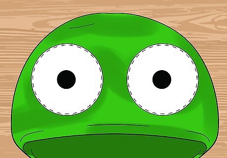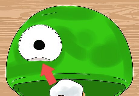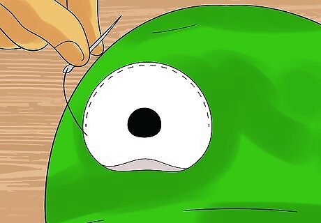 Take the stuffing, and stuff a little bit of it under the eye. Continue sewing the eye on until you are about 2/3 of the way done. Now stuff the eye to the desired amount. Sew the rest of the way.