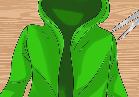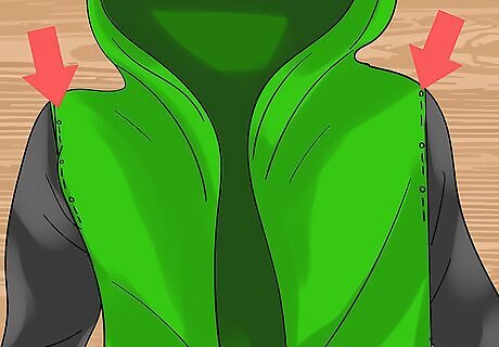 Take the green hoodie, and cut it's sleeves off directly at the seam.