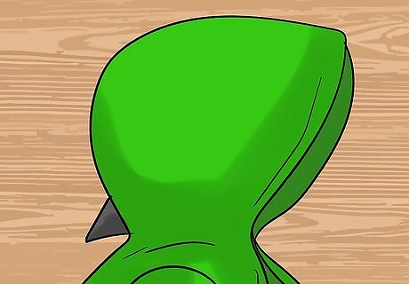 Take the black yarn, and either sew or glue them onto the end of the black sleeves and the beginning of the green hoodie, to make it look like the pattern on GIR's hoodie. It should look like a rag doll type stitching pattern.