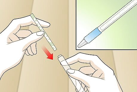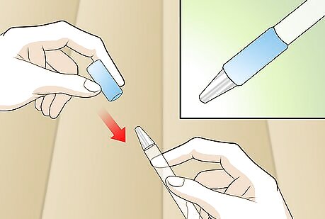 Reverse the ink Now you must reverse the ink on the RSVP, so it pokes out of the back cap instead of the front. To do this, a hole must be created in the back cap of the pen. Use a drill or some kind of heated sharp metal object (use gloves or pliers with hot metal!). Once you finish, insert the ink and screw it back onto the pen. Put on the cap.