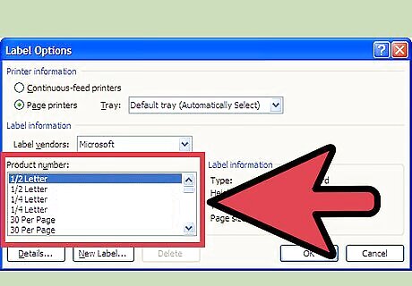Select the correct label size. Click on Options. From the Label Products pull-down list, select the brand name. From the Product Number scroll list, select the product number.