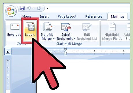 Go to the Mailings tab in the Create group and click Labels. Note that the Envelopes and Labels dialog box appears, with the Labels tab displayed.