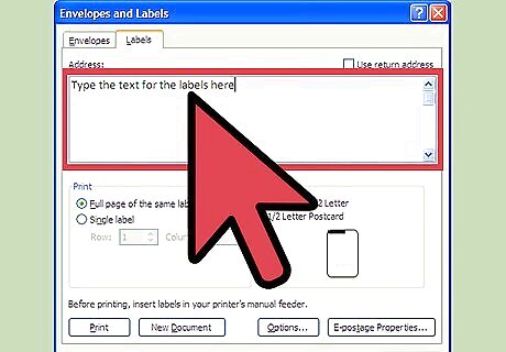 In the Address text box, type the text for the labels