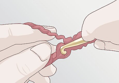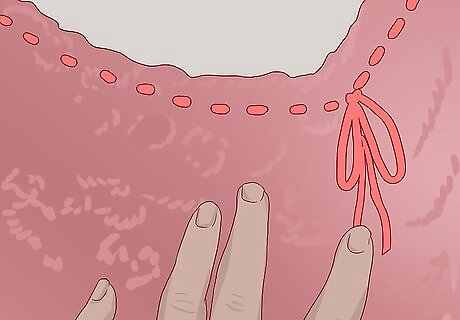 Add a button. Instead of securing your capelet with a piece of yarn or ribbon, you can also sew a large button onto the corner of the top of the cape. You do not need to make a button loop because a large enough button should fit through one of your spaces. Use a needle and thread to sew on the button and then slip it through the space that best secures the capelet.