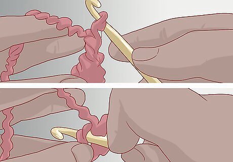 Skip to 5th stitch and double crochet into same space twice. You can make a capelet in just about any stitch. However, if you want to give your capelet a holey design, you can use the V-stitch. To double crochet, loop the yarn over the hook and then insert the hook into the stitch. Yarn over again, then pull through the first loop on your hook. Yarn over again and pull the yarn through the first two loops on your hook. Then, yarn over again and pull the yarn through the last two loops. Be sure to double crochet into the same stitch twice.