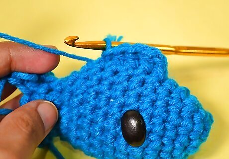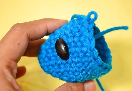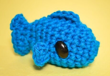 Add the safety eyes. The head of your fish is finished at this point, so you should be able to place the safety eyes accurately. The eyes should go on either side of the fish head and should be placed somewhere in between rounds three and four. To place the eyes, slide the rod of the eye through the correct placement from the front of the work. Place your second eye in, as well, and adjust the two as needed to get them looking the way you want. Once the eyes are placed as you'd like, push the washer onto the rod of the eye from the back of the work. Push it down as far as possible until the washer rests against the yarn. Repeat this step for the second eye, as well. Note that the eyes will no longer be movable once you put the washers on.