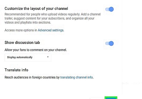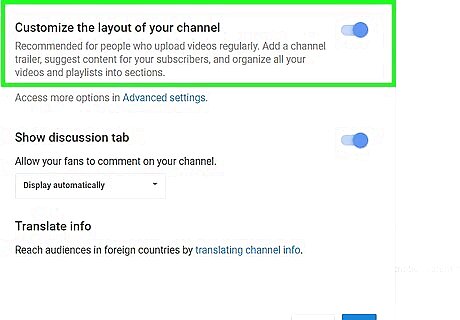 Click the toggle switch Android 7 Switch On next to "Customize the layout of your channel". This ensures that you are able to customize your channel. The toggle switch should be blue and to the right.