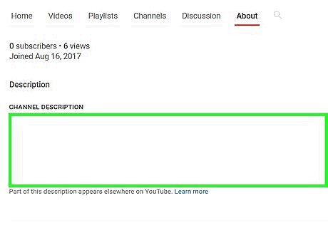 Click Channel Description. It's the button below the "Description" header at the top of the page.