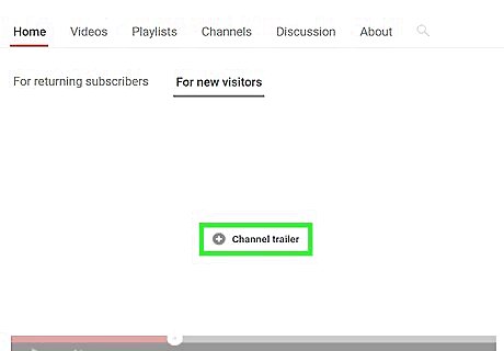 Click Channel trailer. It's the button in the middle of the YouTube player image. This opens a window you can use to select a trailer for your channel.