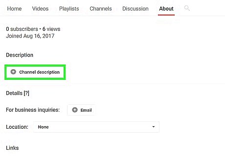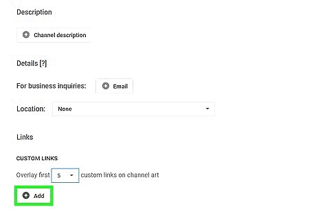 Click Edit Links. It's the first option in the drop-down menu in the upper-right corner. This displays a page where you can add some information about your channel.