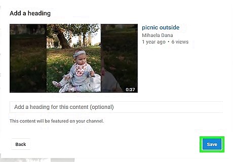 Type a heading and click Save. Type a heading for your featured video and click Save.