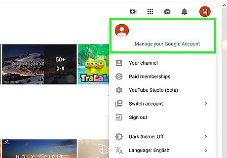 Click your profile image. It's in the upper-right corner of the YouTube page. This displays a drop-down menu for your account. If you have not uploaded a profile image, you will see a colored circle with your initial in the middle.