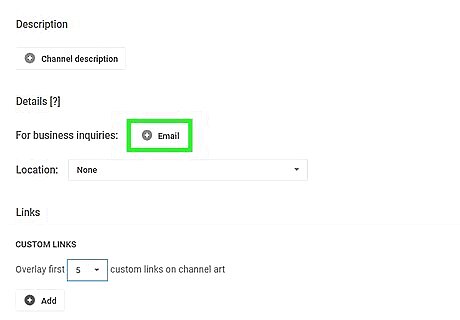 Click Email and add an email address (optional). If you want to add an email address to your YouTube Channel that viewers can contact you at, click the button that says Email and then type an email address in the bar. Click Done when you are finished.