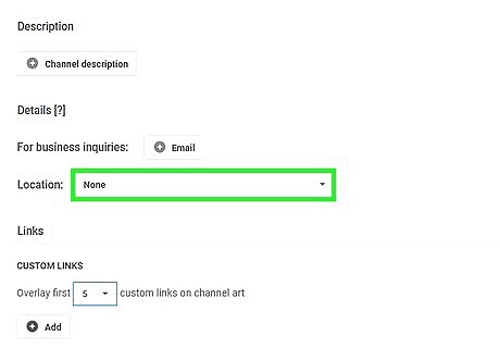 Select a location (optional). If you want to select a location for your YouTube Channel, click the drop-down menu next to location and select the country you live in.
