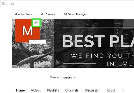 Click the pencil icon. It's in the upper-right corner of the image banner at the top of your YouTube channel page. It appears when you place the mouse cursor over the banner image. Clicking this icon displays a small drop-down menu.