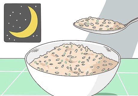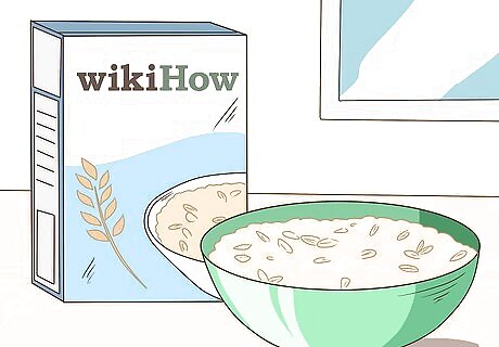 Start the day with oatmeal. If eggs or yogurt aren’t your style, oatmeal is an equally good alternative of a bread-based breakfast. This is partly because oats offer plenty of fiber, which is something you'll want to account for while eating less bread. Note that whole grain oats are available in several forms, including steel cut, rolled, or instant. Each type has very similar nutritional value, but yields different flavors and consistencies. When making your selection, check the nutrition facts label for information about added sugar and salt. For an extra fiber boost and additional nutritional value, add flaxseed meal or chia seeds to your oatmeal. These can also be included in other breakfast foods, such as Greek yogurt or a breakfast smoothie.