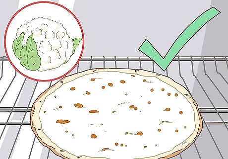 Bake pizza on cauliflower instead of bread. No one will hold it against you if you simply can’t kick pizza from your diet. Fortunately, there’s a way to make surprisingly good pizza crust that isn’t bread at all. You’ll need a head of cauliflower, ½ cup shredded mozzarella, 1/4 cup grated Parmesan, 1/2 teaspoon oregano, 1/2 teaspoon kosher salt, 1/4 teaspoon garlic powder, and 2 beaten eggs. Pulse the cauliflower until you have a finely shredded, rice like material. Steam the cauliflower in a steamer basket and drain, toweling it to remove most of the moisture. After the cauliflower cools, mix it with the cheeses, spices, and eggs. Transfer the mixture to a baking sheet lined with parchment paper, arranging it in the shape of a pizza crust. Bake the “crust” at 400 degrees F (204 degrees C) to 20 minutes, add any sauce and additional toppings, and bake 10 more minutes.