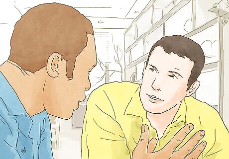 Support victims of bullying. Don’t ignore bullying of any kind. You can deal with someone else being bullied because of their sexual orientation if you take action. Just knowing that someone cares and is there for them can help someone that is experiencing homophobic bullying. Hang out with the bullying victim. This may help them feel better about themselves. It can also discourage the bully from bothering them anymore. Tell the bully to stop. You could say something like, “Bro, leave him alone. He hasn’t done anything to you.” Immediately tell someone of authority like law enforcement, religious leaders, or teachers if the bully is threatening to physically hurt or does hurt the other person.